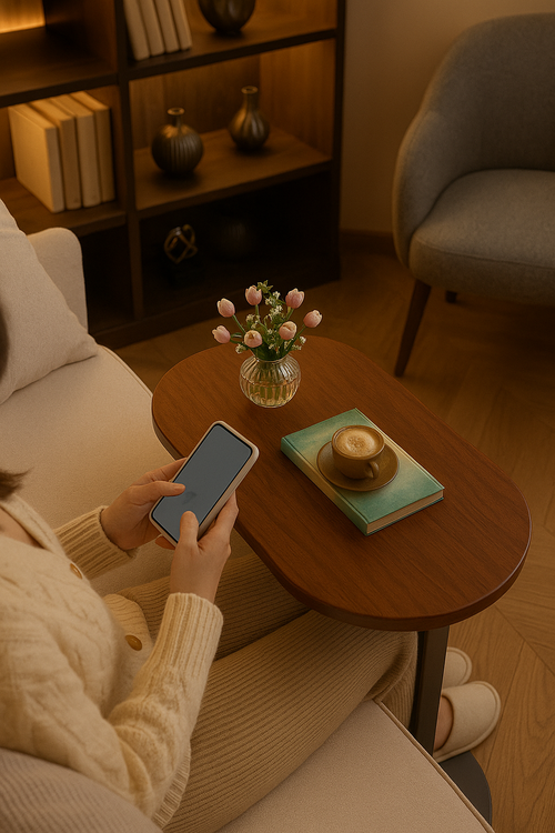 Whether it’s beside your sofa, bed, or reading chair — Luxe Stand™ keeps your essentials within reach while blending beautifully with your décor.