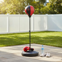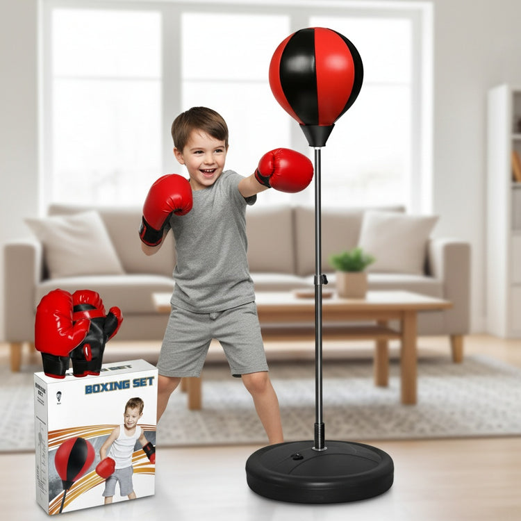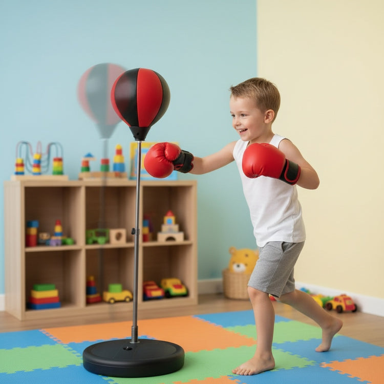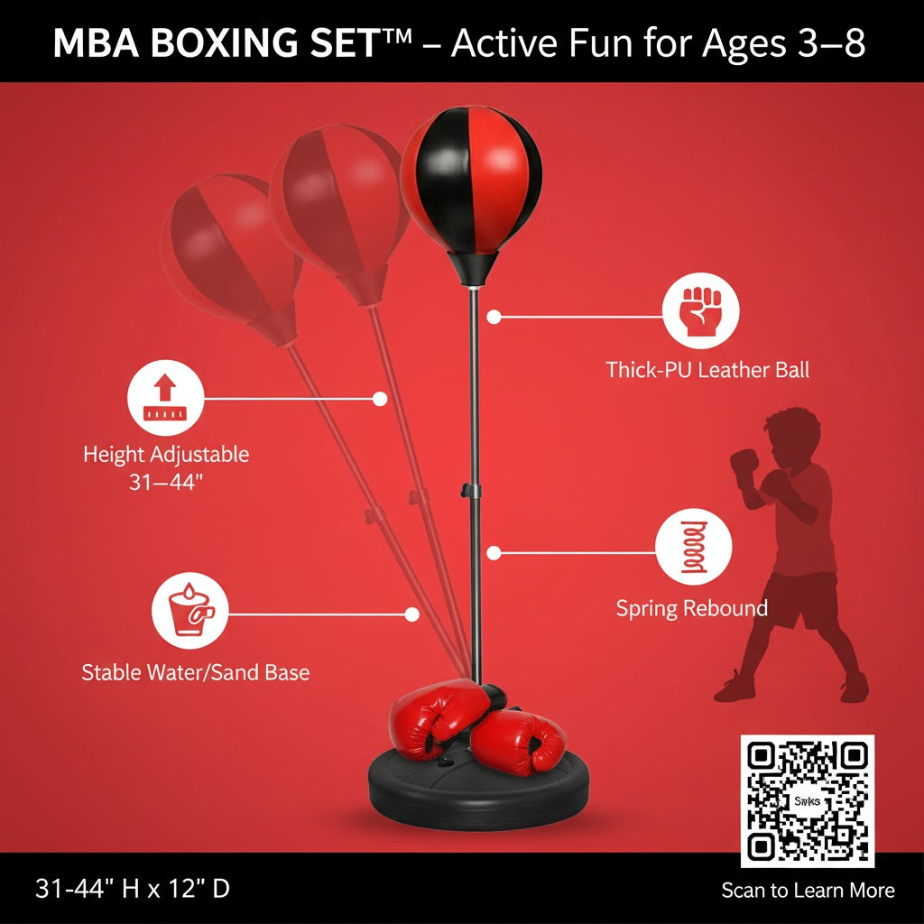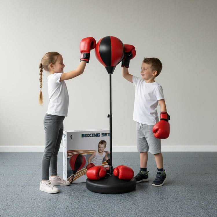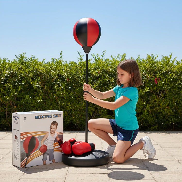 The telescoping stand adjusts effortlessly between 79 and 112 cm, so the MBA Boxing Set™ grows as your child does. Simply twist to unlock, slide to the perfect height, and secure for stable action. No tools required—assembly is quick and travel-friendly. The leak-resistant base, fillable with water or sand, adds extra stability, making it ideal for indoor or outdoor use.