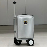 Say goodbye to long airport walks and heavy bags! The Rideable Electric Suitcase™ lets you ride in comfort while keeping your essentials safe. Its smooth, quiet motor glides effortlessly across any surface, turning every trip into a fun, stress-free journey.