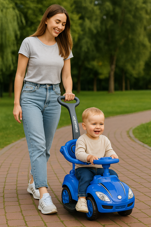 A secure guardrail surrounds the seat to prevent falls, while smooth wheels glide gently on floors and patios. The removable caregiver handle provides full control until your little one is ready to steer solo. Easy assembly means playtime starts in minutes, not hours.