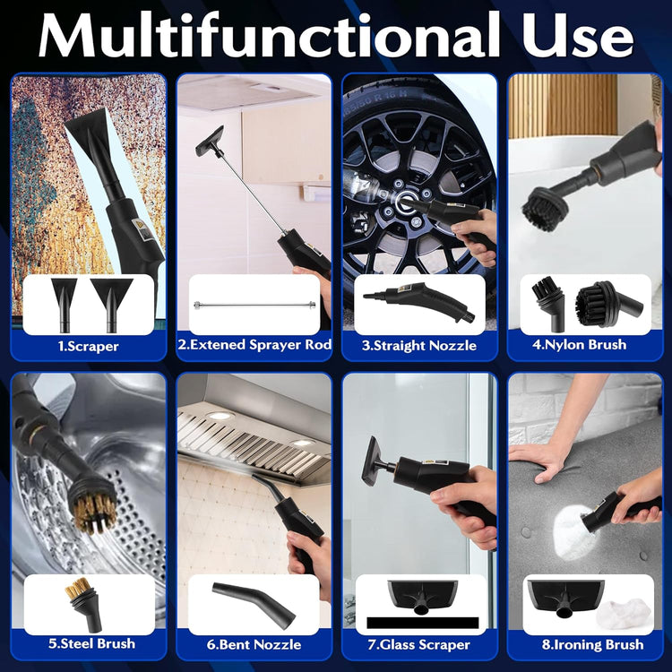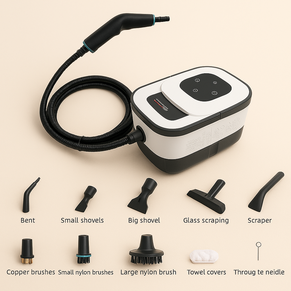 With 10 versatile attachments, enjoy seamless cleaning from kitchen to car. Whether it’s stubborn grease, bathroom stains, or dusty corners — SteamPro Max handles it all effortlessly. Get your SteamPro today and experience spotless perfection!