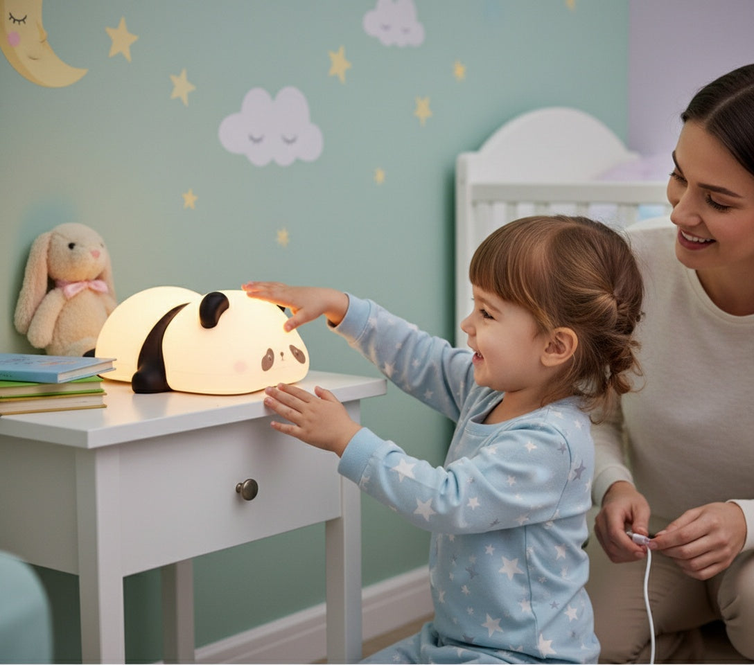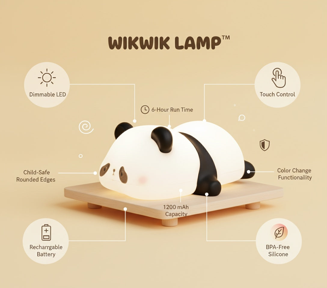 WIKWIK LAMP™ features a food-grade BPA-free silicone shell that’s gentle to touch. Rounded edges and a soft texture make it perfect for little hands to squeeze and cuddle. Non-toxic and easy to clean for ultimate peace of mind.